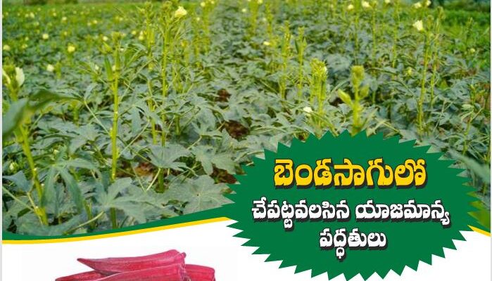 విత్తన మోతాదు :- ఎకరాకు వర్షాకాలం పంటకు 8 – 10 కి./హె. వేసవి పంటకు 18 – 20 కి./హె. సంకర జాతి రకాలకు 5- 6 కి. /హె. విత్తనం కావాలి. ఎర్ర బెండ విత్తన మోతాదు 8 – 10 కి./హె.