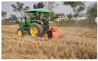 - రోటరీ మల్చర్ ను ఉపయోగించి కొయ్య కాళ్ళను కాల్చకుండా భూమిలోనే కలియ దున్నడం.