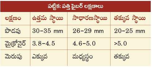 - దీనిని మిల్లీమీటర్లలో కొలుస్తారు. పొడవైన ఫైబర్లు బలమైన నూలును ఉత్పత్తి చేస్తాయి.