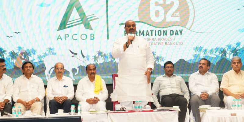 ఆప్కాబ్ రాష్ట్రంలోని సహకార రంగాన్ని బలోపేతం చేస్తూ, గ్రామీణ ఆర్థిక వ్యవస్థకు నాడి వంటి సేవలందిస్తోందని రాష్ట్ర వ్యవసాయ, సహకార, మార్కెటింగ్ శాఖ మంత్రి కింజరాపు అచ్చెన్నాయుడు అన్నారు. విజయవాడలో గవర్నర్ పేటలోని ఎంబీ విజ్ఞాన కేంద్రంలో ఆంధ్రప్రదేశ్ రాష్ట్ర సహకార బ్యాంక్ (APCOB) 62వ స్థాపన దినోత్సవ వేడుకలు ఘనంగా నిర్వహించారు. ఈ కార్యక్రమానికి మంత్రి అచ్చెన్నాయుడు ముఖ్య అతిథిగా హజరయ్యారు. ఈ సందర్భంగా మంత్రి మాట్లాడుతూ బ్యాంక్ ద్వారా ప్రయోజనం పొందుతున్న రైతులకు, మహిళా సమాఖ్యలకు, యువతకు, సహకార సంఘాల సభ్యులకు, అధికారులు, సిబ్బందికి శుభాకాంక్షలు తెలియజేశారు. రైతులకు విత్తనాలు, ఎరువులు, పెట్టుబడుల కోసం సకాలంలో రుణాలు అందిస్తూ, వ్యవసాయ అభివృద్ధికి ముఖ్య భుజంగా ఆస్కాబ్ నిలుస్తోందని తెలిపారు. సహకార వ్యవస్థను మరింత శక్తివంతం చేసి, ప్రతి రైతు కుటుంబాన్ని ఆర్థికంగా నిలదొక్కుకునేలా చేయడమే కూటమి ప్రభుత్వ లక్ష్యమని అన్నారు. ఈ బ్యాంకు వ్యవస్థ పట్ల ప్రభుత్వం సంపూర్ణ నిబద్ధతతో ఉందని, సాంకేతిక ప్రగతితో సహకార బ్యాంకుల సేవలను మరింత ప్రజలతో మమేకం చేసే దిశగా చర్యలు తీసుకుంటామని వెల్లడించారు. డిసీసీబి, పిఏసిఎస్, ఆప్కాబ్లు వంటి సంస్థలు కమర్షియల్ బ్యాంకులు రాని గ్రామీణ ప్రాంతాలలో ఎన్నో సంవత్సరాలుగా సేవలు అందిస్తున్నాయని కొనియాడారు.