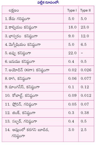 BIS ప్రతిపాదించిన టైప్–1 మరియు టైప్–2 మినరల్ మిక్చర్ల కూర్పు