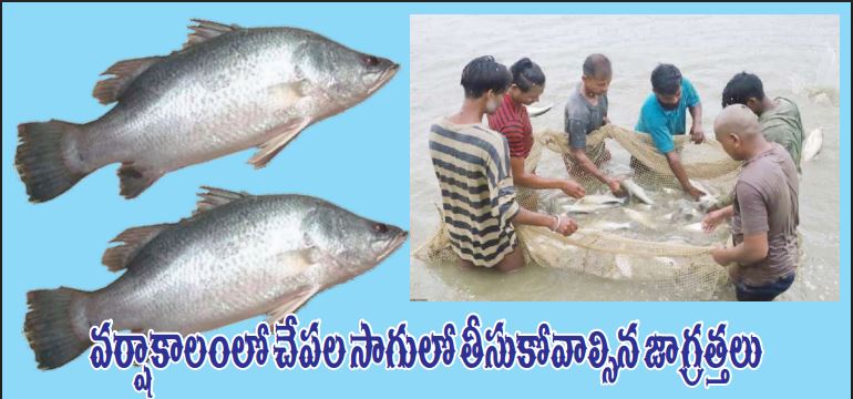 వ్యవసాయరంగంలో చేపల సాగు అత్యంత విలువైన విభాగం. మన దేశంలో చాలామంది మత్స్యరైతులు చెరువులు, కుంటలు, రిజర్వాయర్లలో చేపల సాగు చేసి మంచి ఆదాయం పొందుతున్నారు. అయితే వర్షాకాలంలో చేపల పెంపకంలో కొన్ని సమస్యలు ఎదురవుతుంటాయి. ఈ కాలంలో వచ్చే అధిక వర్షాలు, గాలి వలన మట్టి మరియు దుమ్ము, పొలాల నుంచి వచ్చే రసాయనాల వల్ల నీటి నాణ్యత ప్రభావితమవుతుంది. దీని కారణంగా చేపలు వ్యాధుల బారిన పడతాయి. పెరుగుదల మందగిస్తుంది. కొన్నిసార్లు పెద్ద మొత్తంలో చేపలు చనిపోతుంటాయి. అందుకే వర్షాకాలంలో చేపల సాగు చేపట్టే రైతులు కొన్ని ముఖ్యమైన జాగ్రత్తలు తప్పనిసరిగా పాటించాలి.